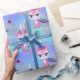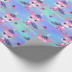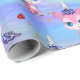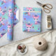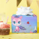 En söt mönster med liten rosa, lila och svan, stort blått öga och rött, rosa och lila, spridda runt omkring dem. Det finns också stänk av guld stjärnor och magi, allt på en söt pastellblå och rosa bakgrund.