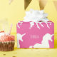 Härlig Silhouette för personligshock rosaUnicorn som slår in papper. Ljus och härlig unicornsilhouette i vit på en ljus shock rosabakgrund. SKRÄDDARSY för att ändra bakgrundsfärg. Personlig med namn ovanför den gulliga magical unicornen i vit. Härlig roligt och unikt slående in papper. Roligt till sjalen en gåvaför barn, tweens, och tonåring vem kärlekunicorns och magical varelser. Färgrikt, modernt och stilfullt.