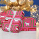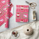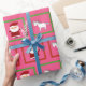 Den moderna och moderiktiga gulliga vitunicornen med regnbågehårmönster och toppen gullig jultomten i rött och grönt kvadrerar med rosa bakgrund. Gulliga unicorngåvaidéer för kvinnor och flickor. Ideal för julklappar.