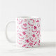 Rosa Valentindagen Hearts Birds Arrows Mönster på ett vitt kaffe mugg, dryck kopp.