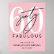 Fira med stil med denna moderna inbjudan till Fabulous Birthday Party, perfekt för ett "Sextio och fantastiskt" tema eller någon annan milstolpsfirande. Designen har en stor vit "60" högst upp med ordet "sextio" skrivet i elegant svart skrivstil lagt över den. Nedan visas "fantastiskt" i en djärv svart sans serif-teckensnitt för en ren, modern finish.