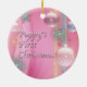 Rosa vita och blå snöflingor och julgran prydnader rosa valpens första jul prydnad.