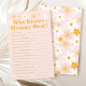 Gör din babydusch extra speciell med vår Personlig Rosa Vår Baby Shower Game "Vem känner Mamma bäst". Perfekt för babyduschspel, det här charmspelet passar in i en mängd olika vår-babyduschteman. Vare sig du utforskar babyduschidéer i vår, är värd för en babydusch i april eller tittar för marschduschidéer, kompletterar blommigten trädgårdskökameter och bytesteman för vildblommor. Idealisk för en babydusch "baby in bloom", tillför den en elegans till alla baby i bloombabyduschtema eller baby i bloomduschidéer.