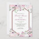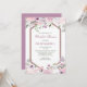 På den här söten inbjudningskort för möhippan, finns det en översta och grund gräns av blek rosa och lavender blommor, inklusive mjuk grönt löv. I mitten och bakom blommigten är gräns en matchande dammig rosa hexagon ram som gränsar till glansigt guld. Din anpassningsbar är i linje med bättre rosa och mjuk grönt i mitten. Bilder och text placeras på en vit bakgrund. Baksidan av inbjudan är att matcha dammig rosa, med guld konetti flingor högst upp.