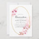 Rosa vattenfärgen blommigt vår quinceanera inbjudan med sakura-blommar med guld geometriskt ram-anpassade till dina händelsespecifikationer.