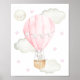 Lägg till de sista detaljerna i din babys barnkammare eller ditt barns sovrum med dessa vackra konsttryck! Designen har rosa varm luftballong, kanin, måne, moln och stjärnor.