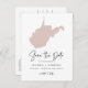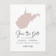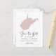 Meddela din bröllop-dejt till familj och vänner med det här Västern Virginia-statliga temat spara datum meddelande vykort. Den illustrerar situationen i Väster Virginia, enkel typografi och handskript. Anpassa genom att lägga till namn, datum, plats och annan information. Det här tillståndet i Väster Virginia när du sparar datumkortet är perfekt för alla bröllop-teman.