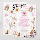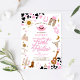 Sätt i sadeln för en rolig fest med denna rosa westernrodeo-inbjudan för första födelsedagen! Med cowboystövlar, hatt, lasso, gitarr, sheriffmärke, kaktusar och ko-tryckaccent, fångar denna design perfekt den rustika charmen hos en rodeo-fest. Perfekt för en flickas första födelsedag, den blandar lekfulla västerländska illustrationer med modern stil för att skapa en unik och minnesvärd inbjudan. Anpassa enkelt med dina evenemangsuppgifter och gör din lilla cowgirls första rodeo oförglömlig!