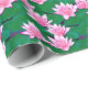 Omslagning pappert i mönster i vatten lillis i mjuka skugga av rosa och dynor av grönt som är lösta, flytande på en damm