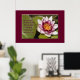 Ett foto av en enda blommande rosa vatten ligger nära de lila dynorna. Längs den lämnat sidan av bilden över en lätt platta är en dikt. Fotografiet är dubbla som ramas in av ett mycket tunt inre ram och ett vitt yttre texturerat ram med hjälp av färg som plockas från liljepaletten. Du kan ändra storleka eller till och med låta den matchas och ramas. Du kan också välja att skriva ut den på arbetsytan. Fotografi och dikt © Patricia AZ Phillips. Blixtpanelen nedan visar andra produkter med rosa vatten lily