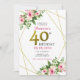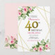 Rosa vattenfärg blommig guld glitter 40-årsdag inbjudningar
