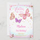 Rosa vattenfärg fjäril födelsedagsinbjudan