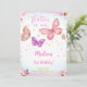 Rosa vattenfärg fjäril födelsedagsinbjudan inbjudningar
