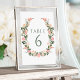 Dessa bordsnummer i bröllop är tidlösa och har en ömtålig vattenfärgad, rustisk blomkrans i rosa ros och en dammig grönt.