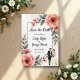 Den här blommigten med elegant vattenfärg sparar datumet inbjudan är perfekt för ett modernt bröllop. Den romantiska designen har en elegant vattenfärgsbild i ram med en blommigt med brud- och groombild och svart kalligrafi på vit bakgrund.