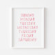 Poster "Rosa Watercolor Days of the Week Educational Days" är en visuellt fängslande och pedagogisk resurs som är designad för att lära unga inlärare veckodagar. Den här poster har en vacker rosa vattenfärgsdesign som ger kreativitet och charm. Med tydlig och djärv text hjälper det barn att utveckla en förståelse för veckodagarna och deras ordning. Den här poster är perfekt för klassrum, hemindelning och spelrum. Det rosa vattenfärgsprogrammet färg skapar en levande och visuellt attraktiv miljö samtidigt som det främjar inlärning.