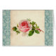 En rosa illustration för härlig Victorian från en telefonkort är fastställd på en åldrig bakgrund med en damastast gräns för aqua eller för turkos. En härlig shabby chic- eller vintagedesign för det kvinnligt, yet eleganten, flickaktigt flicka!