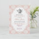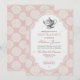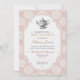 Fira en speciell person eller ett par med en traditionell brittisk fika. Bakgrunden på inbjudan är en bild på ett vintage rosa papper mönstrat med vita rosetter. Ramen med en vintage vit pappersmitt har en vintage-illustration av en utsmyckad tekanna. Mångsidig nog att använda för en bröllops- eller couples shower, baby shower, födelsedagsfest, bröllopsbrunch eller en speciell lunch. Finns i alternativa färger med matchande produkter.