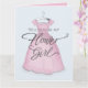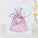 Få ditt lilla ett att känna sig speciell med det här söta bröllopsblomflicka förfrågningskortet, designat med ett rosa klänningstema och en elegant akvarelldesign. Med stilfull kalligrafiskrift och en trendig typsnittsstil är det här charmiga kortet det perfekta sättet att fråga: "Vill du vara min blomflicka?" Den klassiska illustrationen av blomflickans klänning tillför en söt touch, medan den enkla minimalistiska layouten håller det fancy, chic och klassiskt. Handla nu för det perfekta förfrågningskortet!