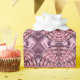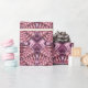 Denna slående pappra omslutning är ett upprepande mönster av en intrikat abstrakt mandala som består av små virvelformade snurrar i ljusa nyanser av vin, lila och rosa.