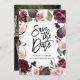 Rosa, vinröd och fikon blomfoto spara datum-kort. Vacker akvarellillustration och modern handskriven text. Del av en samling.