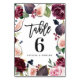 Rosa, vinröd och fikon blomsterlig bröllopsdagdeko bordsnummer
