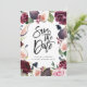 Rosa, vinrött och fikon blomfoto spara datum kort. Vacker akvarell illustration och modern handskriven text. Del av en samling.