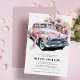 Rosa Vintage bil Modern Möhippa Inbjudningar