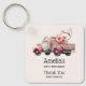 Födelsens fördel är tack vare nyckelkedjan med en söt vismisk vattenfärgsillustration. Persikor och rosa färg. Pickupa lastbil med en gammaldags trälåda bakåt/säng med blommor av körsbärsblommor.