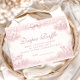 En mjuk och elegant design för baby shower med ömtåliga vintageinspirerade illustrationer i rosa toile-mönster. Ramverket är prytt med charmiga lamm, blommor, himmelska accenter och ett romantiskt band, vilket skapar en tidlös estetisk känsla av en saga i en barnkammare. Perfekt för en klassisk, feminin fest med en raffinerad arvegods-känsla. Den milda rosa färgpaletten och den detaljerade gravyrstilen ger designen en sofistikerad men söt atmosfär som fungerar vackert för traditionella eller cottagecore-inspirerade baby shower-firanden.