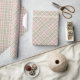 Vävnadspapper av roligt med pastellrosa, violett, lila plaid och lätt kalkgrönt rand mönster.