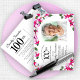 Vackra rosor och vita rutor är kapslade i mörk grönt löv. 100-årsjubileum och personens namn är skrivna med stor röd text. Det finns mer utrymme på baksidan av vykortet för att skapa ett speciellt meddelande till dina gäster. All text kan redigeras. Perfektens val för ett speciellt vår- eller sommarfödelsedagsfirande.