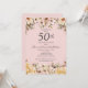 Rosa vit blomster 50-års bröllopsdag fest inbjudningar