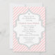 Elegant rosa, vit, grått rand bröllop inbjudningskort för möhippan. Ett modernt mönster-format med snyggt och med mjuk rosa, vitt diagonalt rand, ett grått-hjärta och din text i ram. Contemporaryn med en vintage ser ut på sätt och vis. Du kan ändra bakgrund och text som färg väljer från över 200 färger i diagrammet Zazzle färg. Klassen ingår i ett bröllop-set och är perfekt för alla säsonger i bröllop: vår, sommar, fall och vinter.