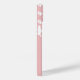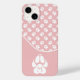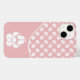 Den här designen delas upp med en vågform för roligt. På grund finns det ett vitt hund som har ett personligt monogram på rosa. Längst upp finns en mönster av vit hund tass avtryck på rosa färg.