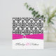 Rosa, vit och svart Damask bröllopsinbjudan 2 Inbjudningar