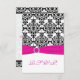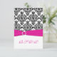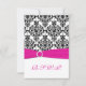 ****VÄNLIGEN OBSERVERA att bandet och juvelerna är tryckta bilder och inte är äkta. Detta rosa, svarta och vita damaskus-RSVP-kort matchar den bröllopsinbjudan som visas nedan.
