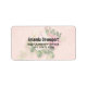 Adressetiketter med en blommigt bukett med rosor med vita och rosa blommor. Bakgrund är rosa med ett blommönster. Utformning av söt och elegant.
