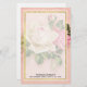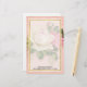 Papper pappra med en blommigt bukett med rosor med vita och rosa blommor. Bakgrund är rosa med ett blommönster. Söt och elegant. Ett halvgenomskinligt lagrar överst med faux guld foil gräns. Anpassa dina behov till namn och adress, eller till spelar ingen roll kostym.