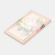 Fäst anteckningar med blommigt bukett med rosor med vita och rosa blommor. Bakgrund är rosa med ett blommönster. Söt och elegant. En halvgenomskinlig lagrar överst med faux guld foil gräns.