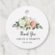 Elegant rosa ros blommigt bröllop tackar er för taggen. Rosa ros och vita vattenblommor kapas i mjuka grönt löv. De utgör en spray längst upp i bröllop tack märkre. Tacken är skriven i ett vackert och populärt skript. Bröllop paret namn skrivs nedan i ett klassiskt serif-teckensnitt. Datum i bröllop följer. Hela texten kan enkelt ändras. Det här tackar du för taggkoordinaterna med den samlingen för Rosa och vitBlommigt Bröllop.