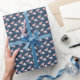 Denna rosa och vita blommiga design på en marinblå bakgrund gör ett mycket vackert presentpapper