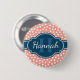Snyggt, trendig ljus rosa och vit mönster i bakgrunden, med en mörk blått etikett med anpassade namn och monogrammall.