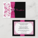 Det svarta och vita och rosa blommigtens bröllopsmottagningskort eller inmatningskort har ett tryckt satin med ett band och en båge med tryckt diamantjuveler och FAUX glitter gått med hjärtan på det som matchar den bröllopsinbjudning som visas nedan. Du kan också anpassa det till ett riktningskort, ett presentkort, ett välvilligt kort, ett mottagningskort, en bröllop-webbplats eller annat informationskort genom att ändra anpassadet. Om det finns några andra matchande objekt som du behöver, skicka e-post till din förfrågan till niteowlstudio@gmail.com.