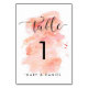 En smak av rosa vattenfärg i bakgrunden. Kopian är redigerbar och teckensnittet kan ändras. Det här bord-kortet har matchande datum-, inbjudnings- och frimärke-datumkort. Gör alla dina bröllop-objekt koordinerade!