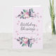 Ett härligt kort för att skicka födelsedagspresent till en vän eller älskad. Den här designen har två blommigt-buketter med rosa ros och grönt löv och flyter rosa blommor i en ljus rosa bakgrund. I mitten av hälsning står det "Birthday Blessings for any speciell" i mörk grått-skriptteckensnitt. Inuti (lämnat) är den populära bibeln 6:24 Herren välsignar dig och behållan. Den inre (höger) hälsning lyder "må du uppleva Guds rikaste välsignelse på din speciella dag. Grattis på födelsedagen!" All text kan redigeras. Detta kort är perfekt för alla kvinnliga vänner eller släktingar. Varför inte köpa några till behållan till hands hemma.