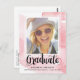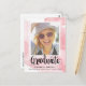 Det här vackra vykortet för fotoannonsering i studenten har en trendig med vattenfärgsbakgrund och skriptbokstäver. Postkortets framsida innehåller ett stort foto av den nya grad där "Student" i ord är skriven nedan i manuskript med text. Bakgrunden är en söt rosa vattenfärg struktur. Lägg till student namn, skolan och studenten till vykortets framsida. Du kan lägga till mer information om anpassningsbar och studentfest på baksidan.