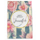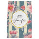 Giftväska med ett vackert mönster med söt rosa blommor överst på en strimlad mönster som består av blått och grädde färgad rand. En vit cirkel ram med en faux guld-folie gräns, överst med personlig inuti.