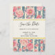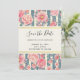 Party sparar datumkortet med ett vackert mönster med söt rosa blommor som läggs ovanpå ett strippat mönster som består av blått och grädde färgad rand. En rektangel ram med en faux guld-folie gräns överst med personlig inuti.