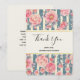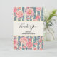 Ett stort tackkort med ett vackert mönster med söt rosa blommor överst på en strimlad mönster som består av blått och grädde färgad rand. En rektangel ram med en faux guld-folie gräns överst med personlig inuti.